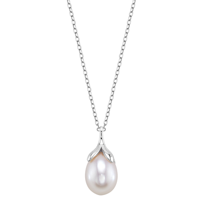 This beautiful pearl pendant is mounted with a 10mm White drop-shape Freshwater pearl on a gorgeous 925 sterling silver rose gold plated 17" chain.