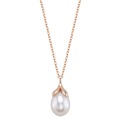 10-11mm Freshwater Pearl Rose Gold Plated Olive Drop Pendant 10-11mm Freshwater Pearl Rose Gold Plated Olive Drop Pendant - Model Image