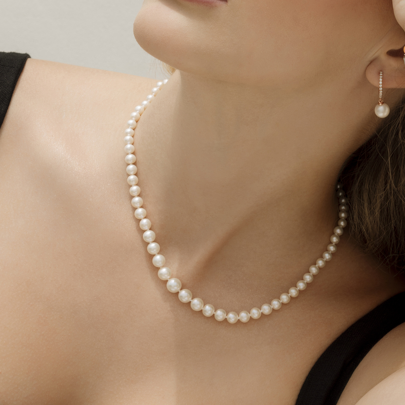 An ode to proportion and poise, the 3.0-9.0mm White Freshwater Graduated Pearl Necklace flows from delicate seed pearls to a luminous centerpiece with effortless grace. Expertly matched for color and luster, it refines every neckline with timeless sophistication.