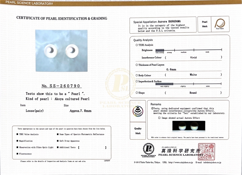 - Certified for excellence with an independent PSL (Pearl Science Laboratory) report from Japan.