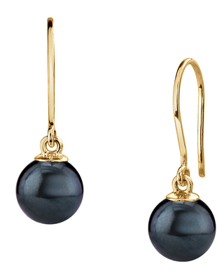 A beautiful pair of 8mm black freshwater cultured pearl earrings with gorgeous 14K gold mountings. Our freshwater pearls come directly from the pearl farms of China. These pearl earrings comprise of approximately 1.4 grams of the highest quality 14K gold. All pearl earrings are approved by our staff of GIA pearl experts and come packaged in a beautiful pearl jewelry box. Please view the options below to customize your pearl earrings to your specifications. These earrings are approximately 1 inch in height including the pearl.