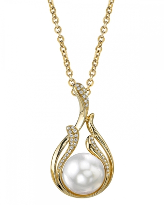 This beautiful white South Sea pearl pendant features a lustrous 9mm, AAA quality pearl. The pearl is mounted with 0.143 carats of dazzling SI-clarity diamonds on the finest quality 14K gold. This pendant comes packaged in a beautiful jewelry gift box with an official certificate of authenticity.