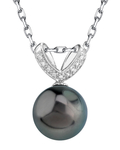 A beautiful pearl pendant with a gorgeous centerpiece! This remarkable 14K white gold pendant has a beautiful 11mm high quality Tahitian South Sea black pearl with .04 of SI quality sparkling diamonds. For the beauty of Tahitian black pearls without compromise, this pendant will suit your pearl needs.