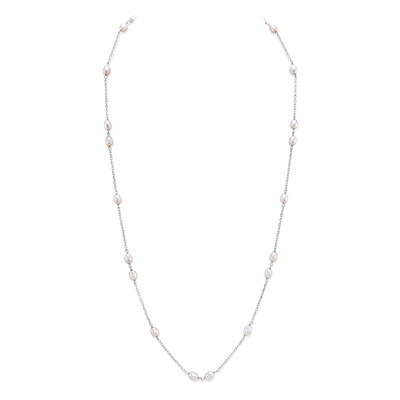 This beautiful Freshwater pearl necklace consists of beautiful and lustrous 4.5-5.0mm pearls in AAAA quality mounted on a 18" 925 sterling silver or yellow gold fill chain.